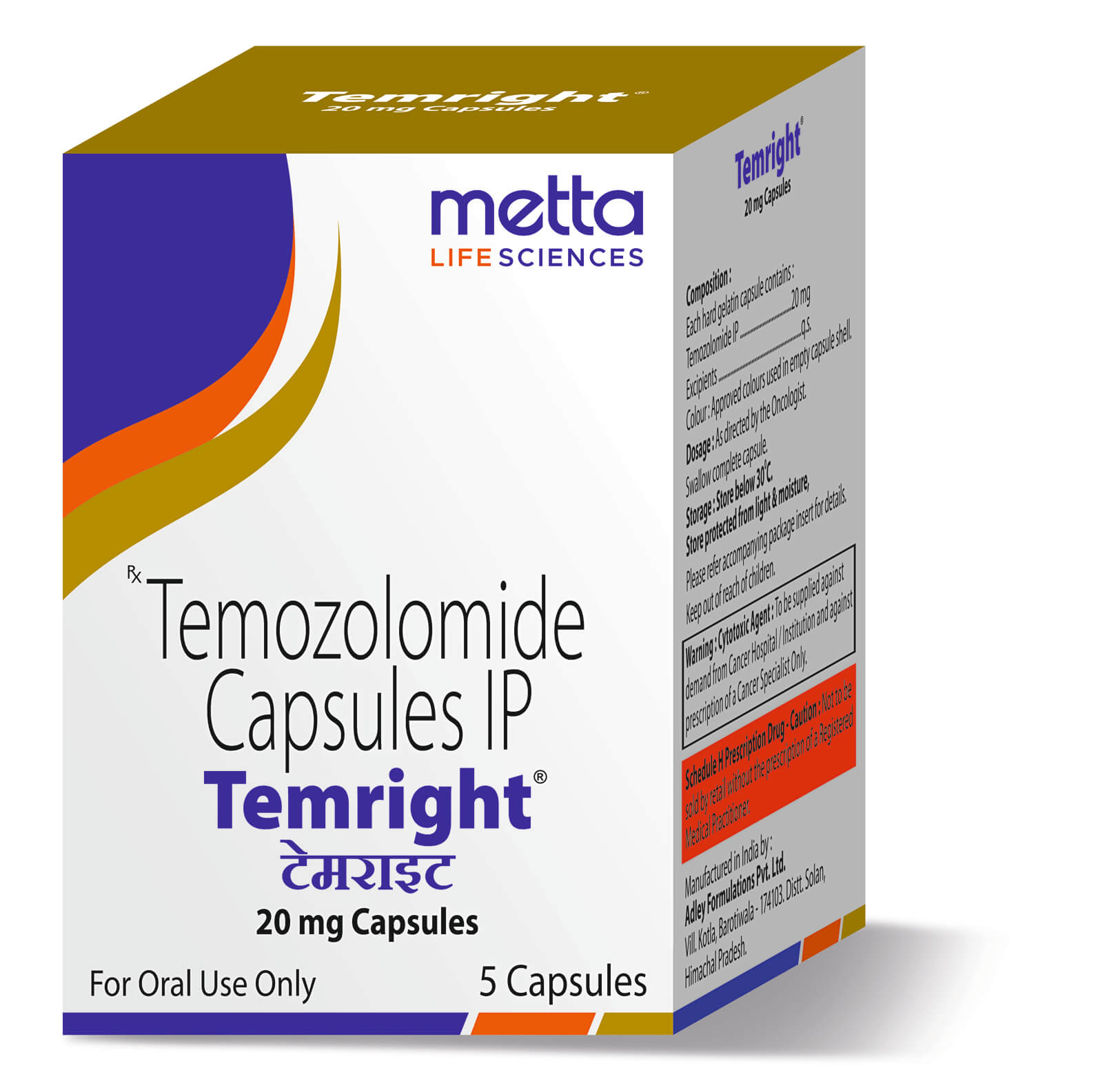 Temozolomide 20mg, 100mg, 250mg cap